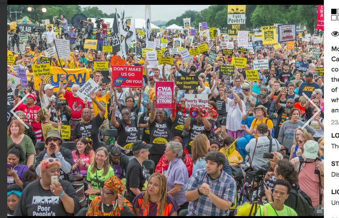 A multi-issue “fusion” movement based on a moral revival with a strong element of religious commitment -– as the Poor People’s campaign calls it and organizes it -- against subjugation, to heal the Earth and human civilization. A movement against subjugation of the Earth, of women, of Blacks and Muslims and Latinos, of the poor of all colors and locales, of the independent press, of children ripped from their parents’ arms while their parents are desperately seeking refuge from murderous violence.