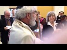 VIDEO: During the week before Passover/ Holy Week in 2013, Reb Arthur Waskow was arrested with other clergy and religious leaders at the White House while participating with Interfaith Moral Action for the Climate in a pre-Passover/ Holy Week interfaith service.  Beside him, waiting to be arrested a few minutes later, was Rabbi Mordechai Liebling, a member of The Shalom Center's Board and a member of the faculty of the Reconstructionist Rabbinical College. Click on the title or the triangle on the video pane to watch the two-minute video. Details of this action are located at https://theshalomcenter.org/arrested-palms-matzah-globe-and-white-house